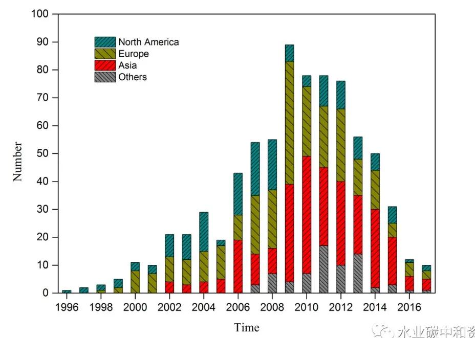 mbr工程應用衰落是全球性的,歐洲和北美經歷了21世紀最初十年“熱戀”后突然“失戀”,新增項目數量銳減;2009年后亞洲成為mbr工程應用的主力,以至于2012年后全球大型mbr項目主要集中在中國本土境內。圖3顯示的世界mbr預計年復合增長率也同樣顯示出,2014年后世界mbr市場增長主要由亞太地區所主導導,其中,中國增長量對亞太地區總增長有著絕對的貢獻份額。
