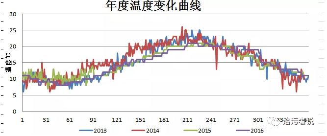 我國地理緯度跨度較大,相當(dāng)大的一部分區(qū)域都在北緯23.5°~66.5°的北溫帶區(qū)域內(nèi),這個區(qū)域最大的特點就是太陽直射點在南北回歸線之間做回歸運動,受到太陽輻射的影響四季的氣溫變化分明,因此在我國大部分地區(qū),一年的春夏秋冬的周期性交替是每年必然產(chǎn)生的結(jié)果。在這些區(qū)域內(nèi)的污水廠的水質(zhì)如果要穩(wěn)定達(dá)標(biāo)的運行,必須針對四季變化進(jìn)行工藝管理。