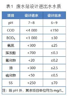 廢水站處理出水水質需滿足《煉焦化學工業污染物排放標準》(gb 16171—2012)中的新建企業間接排放標準要求。設計進出水水質見表 1。