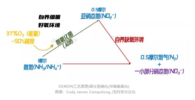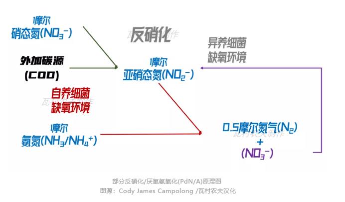 為什么要選擇進(jìn)行部分反硝化的反應(yīng)呢?請(qǐng)大家先再看一眼上邊的圖片:部分亞硝化/厭氧氨氧化(partial nitritation-anammox)除了能將亞硝酸鹽和氨氮轉(zhuǎn)化成氮?dú)庵猓€不可避免地生成硝酸鹽。
