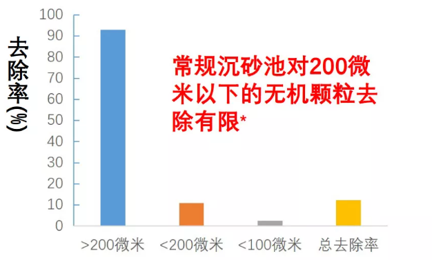 除了上述的問題以外,還有些地區(qū)的沉砂池根本攔截不住砂粒,但是生物池內(nèi)的污泥濃度中mlvss占比卻極低,這主要是因為現(xiàn)階段標(biāo)準(zhǔn)設(shè)計的沉砂池都是以去除0.2mm的砂粒為主要去除對象的,如果進(jìn)水的無機砂粒粒徑小于0.2mm,相對密度低于2.5的,就不能被沉砂池有效的去除,造成生化段活性污泥的無機成分增多。